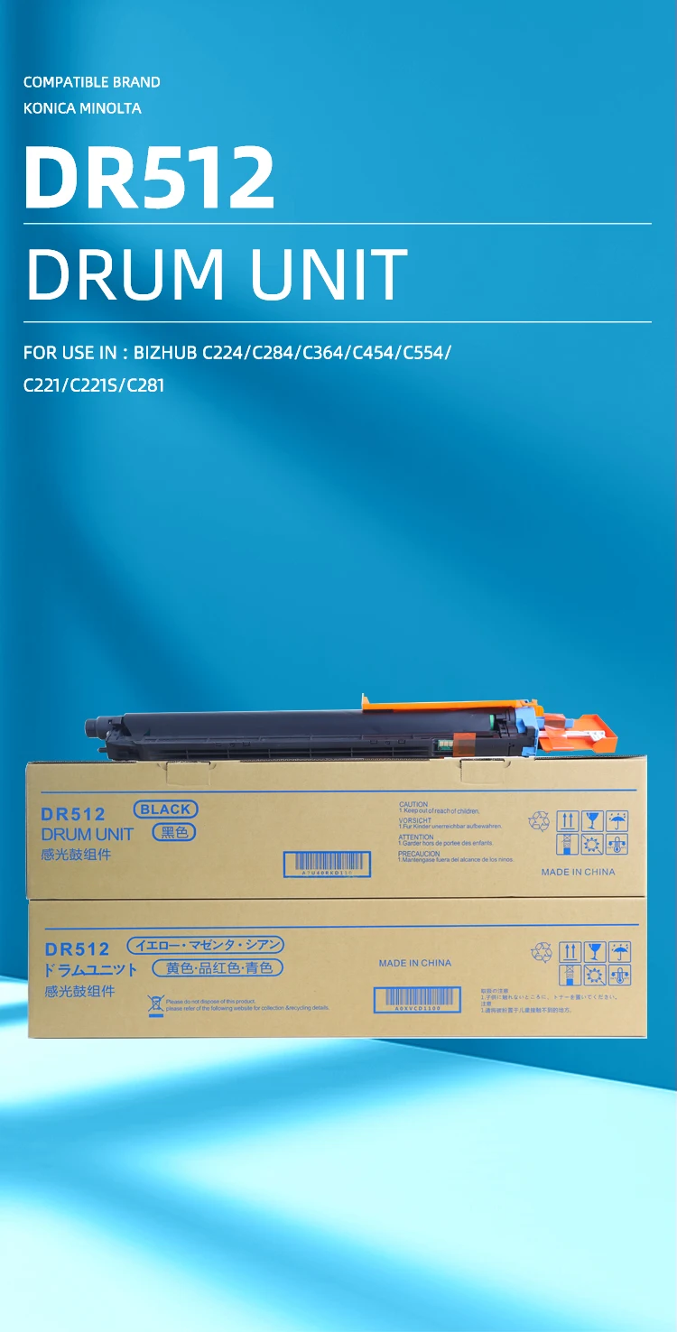 Pièces de photocopieurs DR512 compatibles pour Konica Minolta Bizhub C224 C284 C364 C454 C554 C221 C221S C281 Unité de tambour